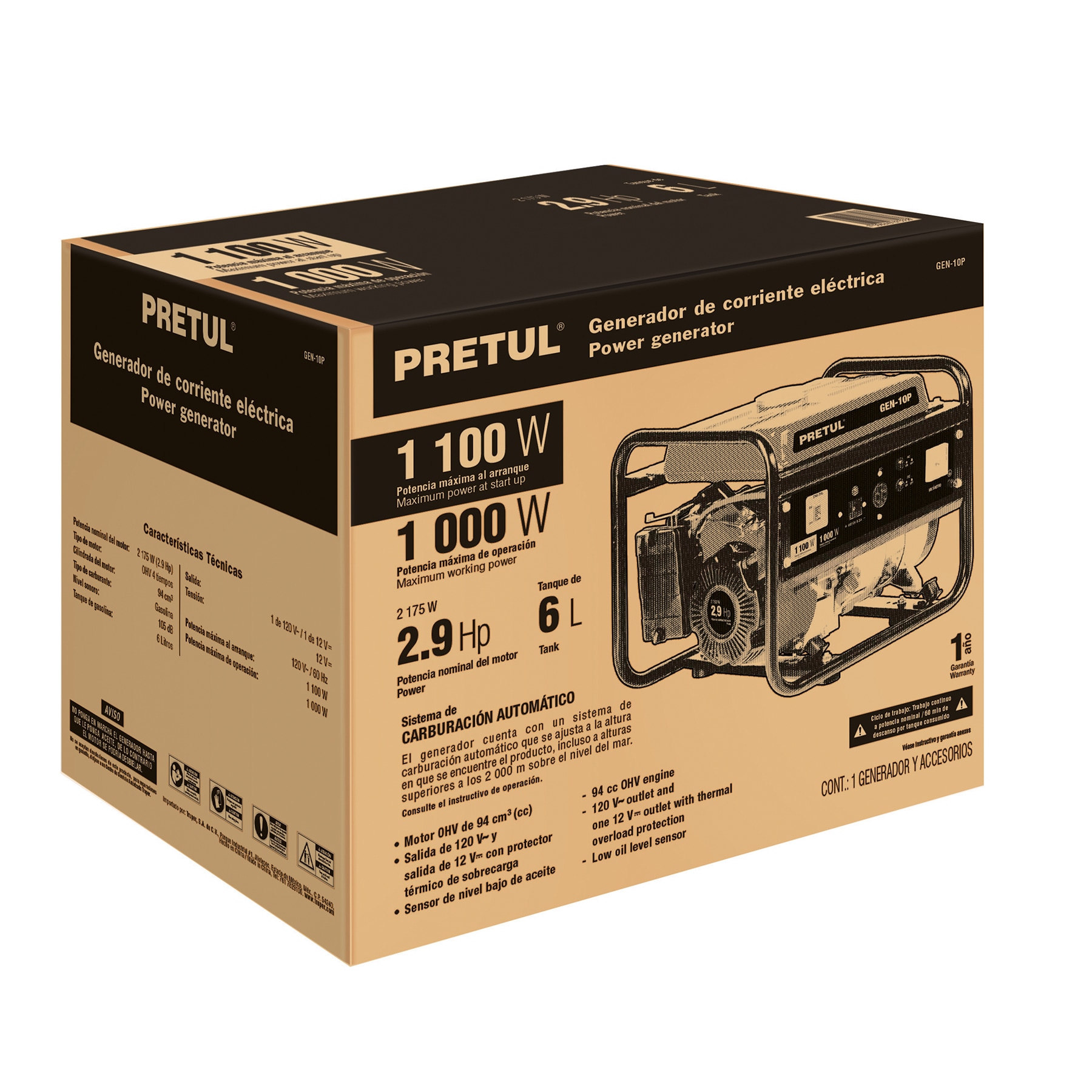 - Se recomienda aceite semi-sintético para motor de 4 tiempos Truper®. Brinda mejor desempeño y vida útil a su generador (no incluido)